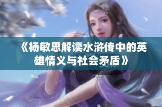 《杨敏思解读水浒传中的英雄情义与社会矛盾》